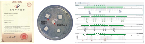 DNA storage cardcould be used for DNA extraction and PCR in the forensics and paternity test. It could be used for building a simple, eazy-operated DNA auto-extraction program by auto DNA extraction instruments. It could significantly lower the requiredamount for the blood sample, inactivate the infectious germ and virus, and avoid the contamination to the operator, especially for the blood collection from high risk population.