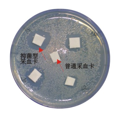 看到明顯的抑菌環(huán) 鼎偵血樣采集卡上的一個(gè)樣本